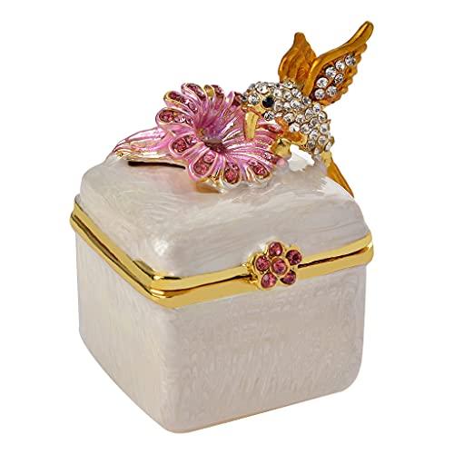 It also makes a great gift. This is a great choice. Give this elegant gift to someone special. This bird and flower figurine jewelry box is crafted from premium zinc alloy and gold-plated for a luxurious finish. It's adorned with vibrant enamel and sparkling crystals. Each piece is meticulously hand-painted, ensuring a unique, artistic touch.
