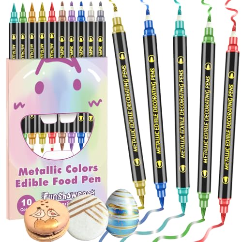 These food coloring pens feature a double-sided tip: the 1mm fine end allows you to write, outline, create art deco designs, and add intricate details without tearing the oblate. The 2.5mm thick tip makes coloring and drawing easy. These baking color markers are perfect for Halloween, Valentine's Day, Christmas, weddings, school events, baby birthdays, baptisms, and other special occasions. They're also child-friendly, making them a great gift. They're also a great way to create with your kids.