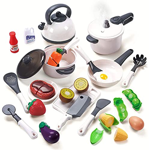 Cute Stone Pretend Play Set, 27-Piece Educational Toy Set with Realistic Spray, Pressure Cooker, Pot, and Cookware, Luxurious Ingredients, Perfect for