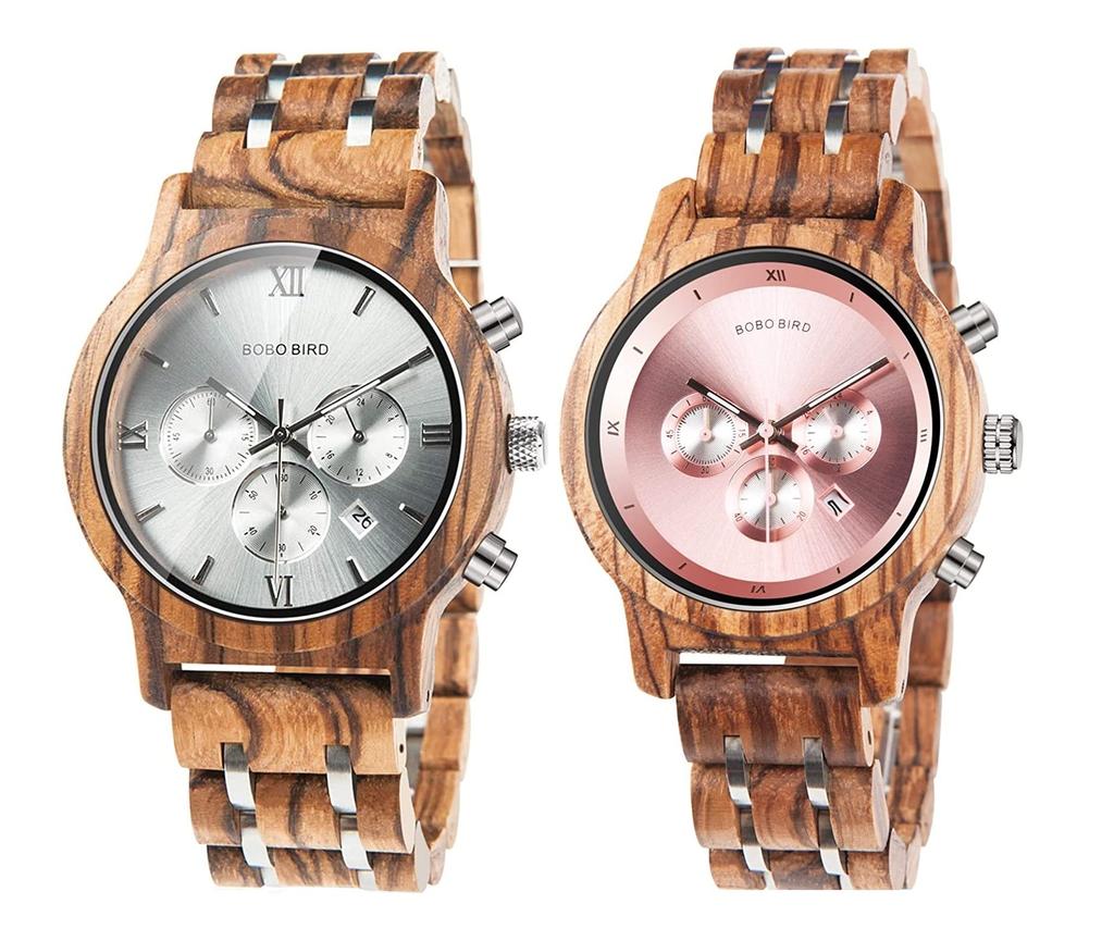 BOBO BIRD Wooden Pair Watches with Gift Box, Analog, Japanese Quartz Movement, Chronograph, Lightweight, Date Display, Stopwatch, Men's & Women's, Cou