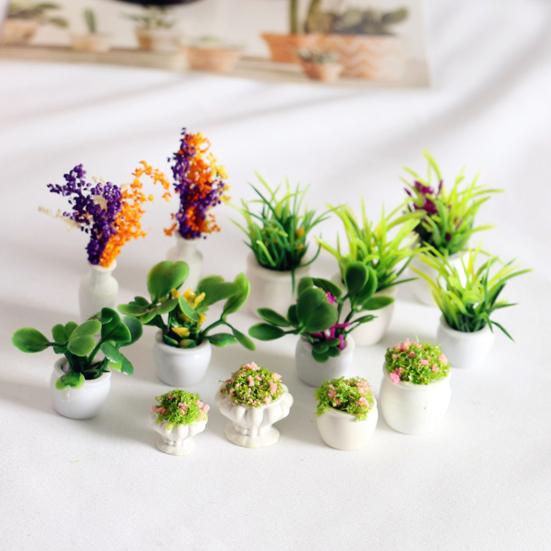 Mini Plant Model 1/12 Scale Doll Houses Plants Realistic Micro Plastic Pots for Doll Houses Garden Accessories Fairy Garden Patio Decor Miniature