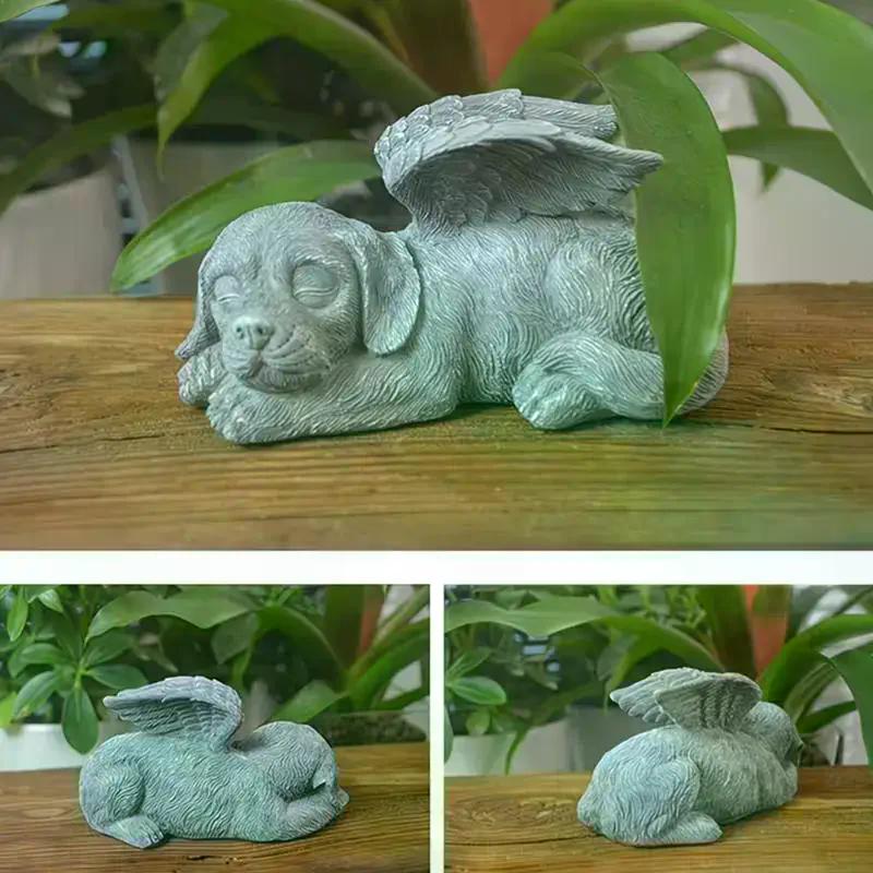 Resin Angel Dog Cat Statue Garden Decor Puppy Tombstone Sculpture Ornaments Gifts For Yard Home Decoration Living Room Supplies