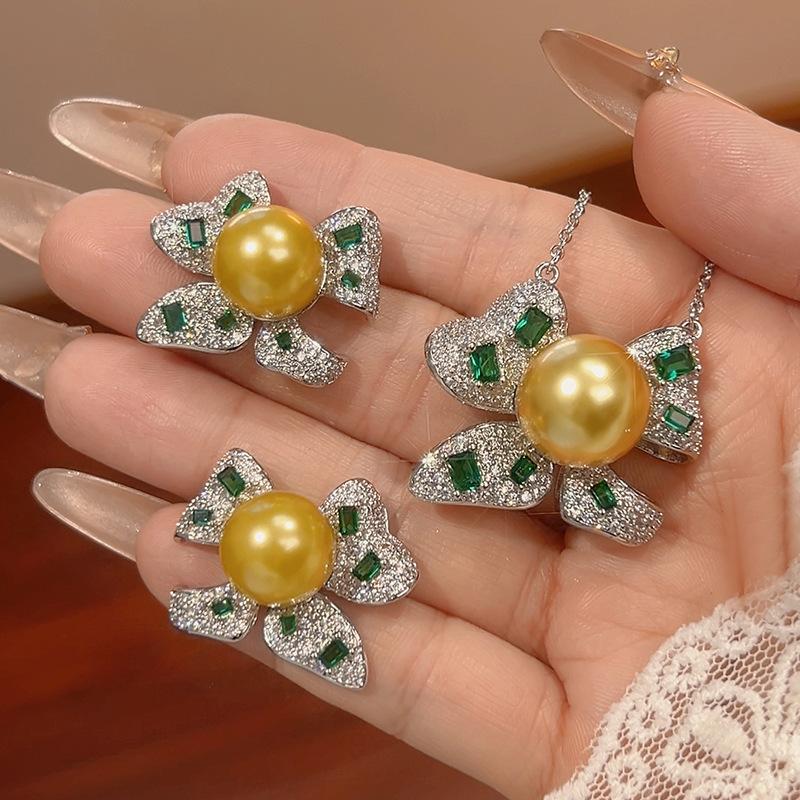 Manufacturer's Set Of Pearl Earrings Necklace Emerald Nanyang Women's Style High-end Palace Fashion