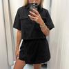 Tooling Denim Suit Skirt Pants Women's Summer V-Neck Short Sleeve Top Spice Girl High Waist Irregular
