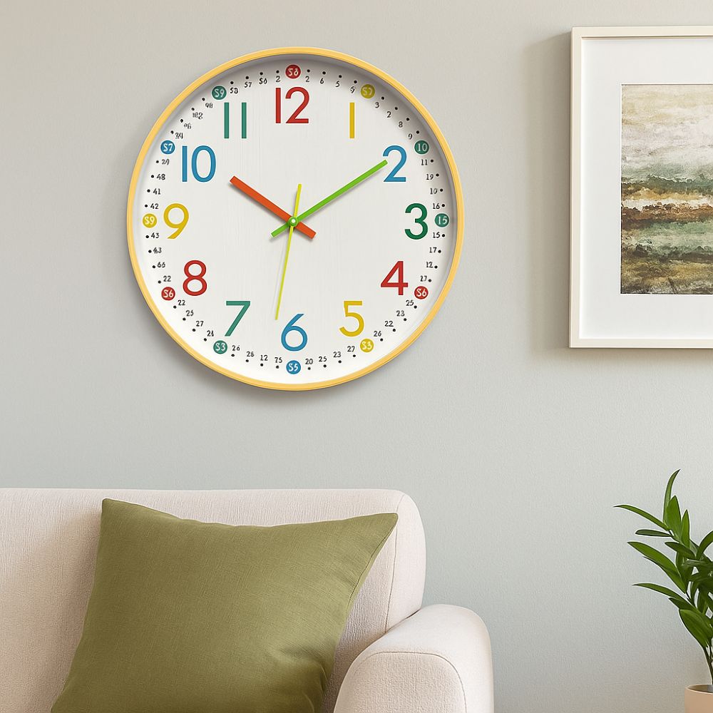 12 Inch Numeral Wall Clock Colorful Children Clock Silent Electronic Clock Home Office Decors