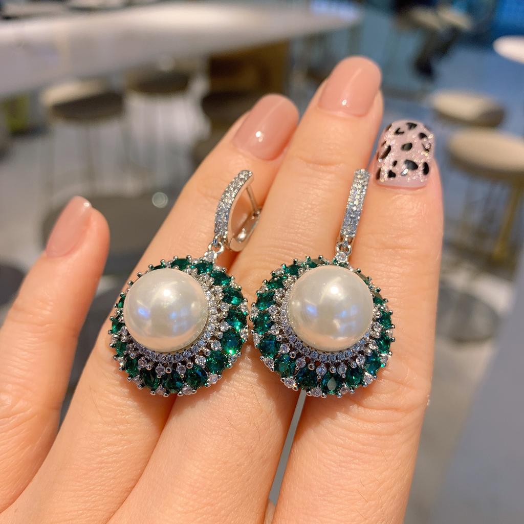 Live Streaming New Emerald Australian Pearl Earrings Rings Necklaces Fairy Style Women's Fashion