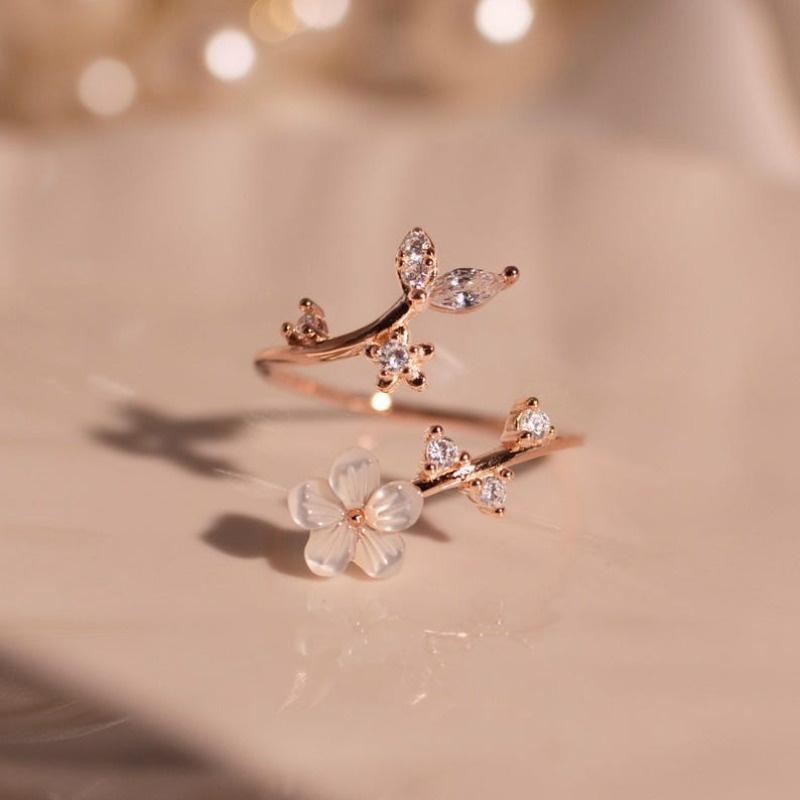 Exquisite Sparkling Inlaid Zirconia Flower Open-end Ring, Suitable for Women's Daily Accessorizing Jewelry Gifts