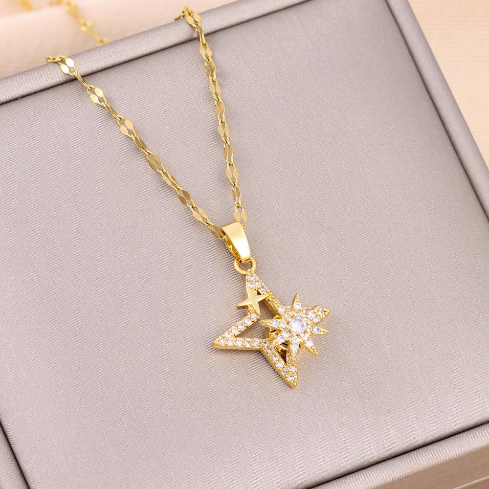 New In Rotatable Zircon Crystal Lucky Star Pendant Necklaces For Women Trendy Female Stainless Steel Chain Ladies Accessories