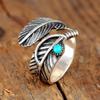Bohemian Ethnic Style Creative Faux Turquoise Opening Adjustable Ring Women Retro Party Personality Jewelry Accessories