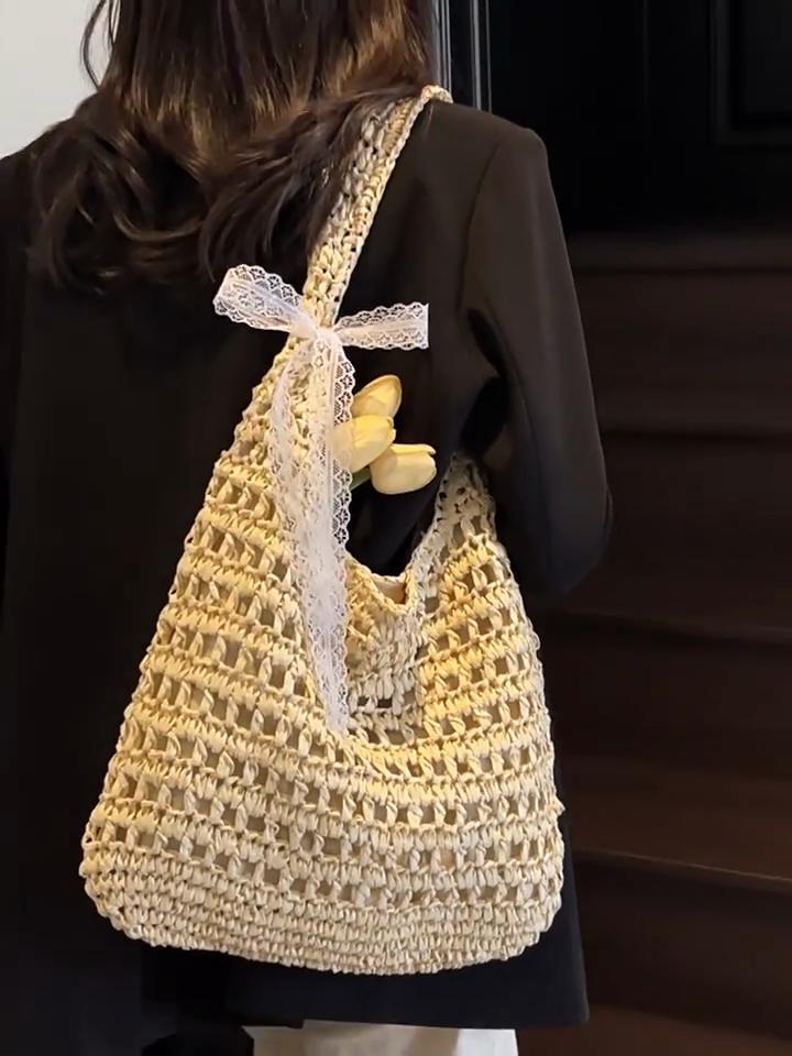Yogodlns Fashion Crochet Straw Bag for Women Raffia Woven Tote Handbag New Hollow Clutch Beach Bag for Vacation Casual Totes