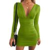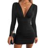 Women's V-neck Sexy Long-sleeved Short Skirt Solid Color High Waist Hip Dress