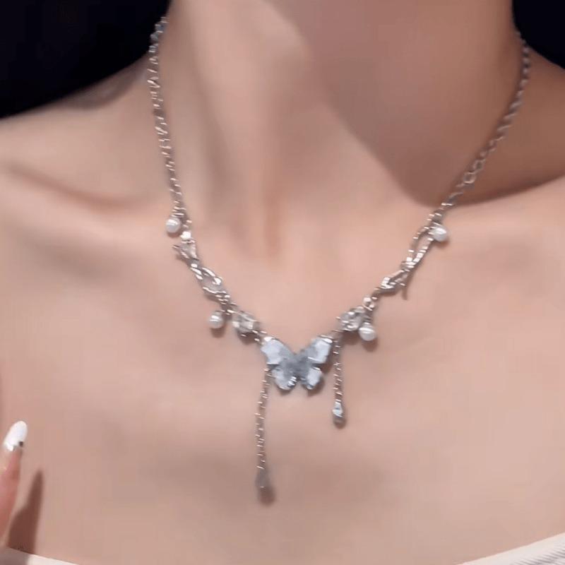 Super Immortal Butterfly Crystal Necklace Women's Light Luxury Niche Design Sense New Tassel Clavicle Chain Premium Neck Chain Jewelry