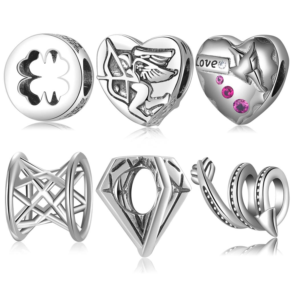925 Silver Sparkling Angel Wings Dream Catcher Skull Clear CZ Charms for Jewelry Making Fit Original Designer Bracelets