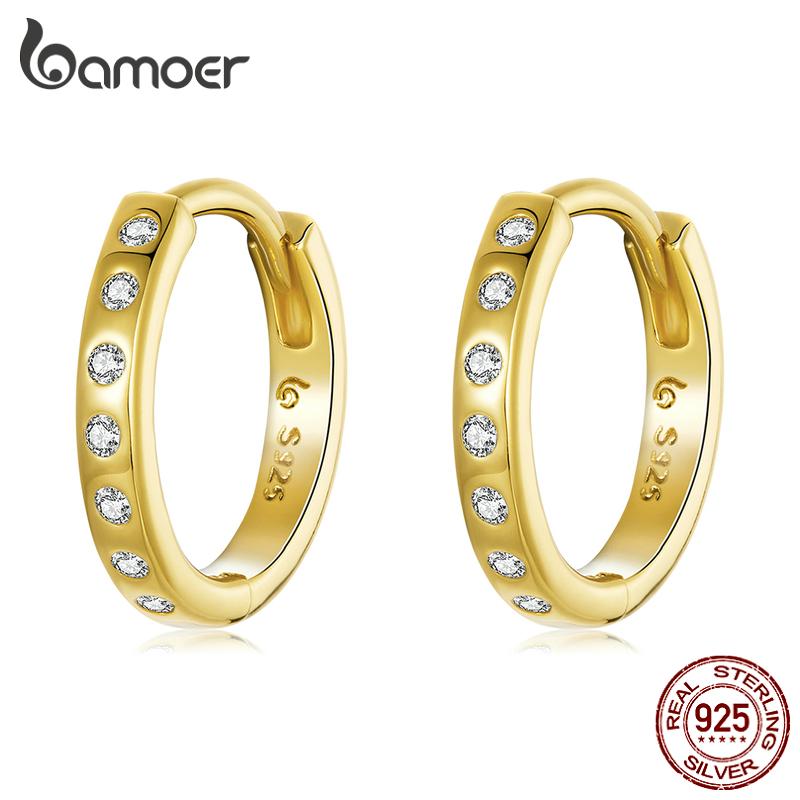 BAMOER Gold Hoop Earrings for Women 925 Silver Minimalist Simple Circle Earing Real Silver Korean Fashion Jewelry