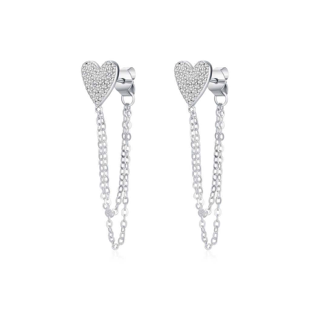 MODIAN 925 Silver Sparkling CZ Hearts Long Tassel Chain Trendy Daily Stud Earrings For Women Fine Jewelry Gifts