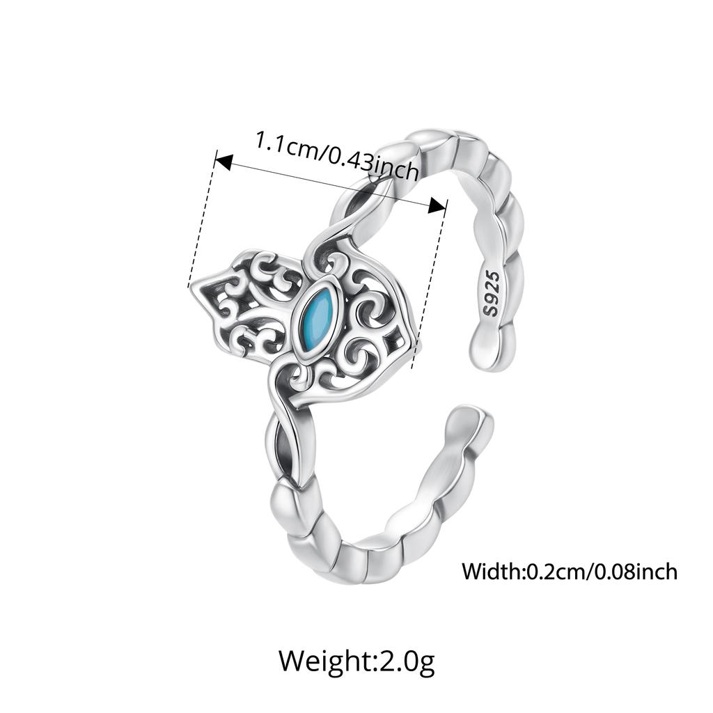 Bamoer 925 Silver Twisted Hamsa Hand Ring Retro Turquoise Adjustable Open Ring for Women Family Guarding Party Gift