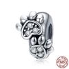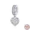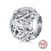 WOSTU Real 925 Silver Heart Beads Flower Retro Pattern Charms Pendant Fit Original DIY Bracelet Necklace Silver Jewelry