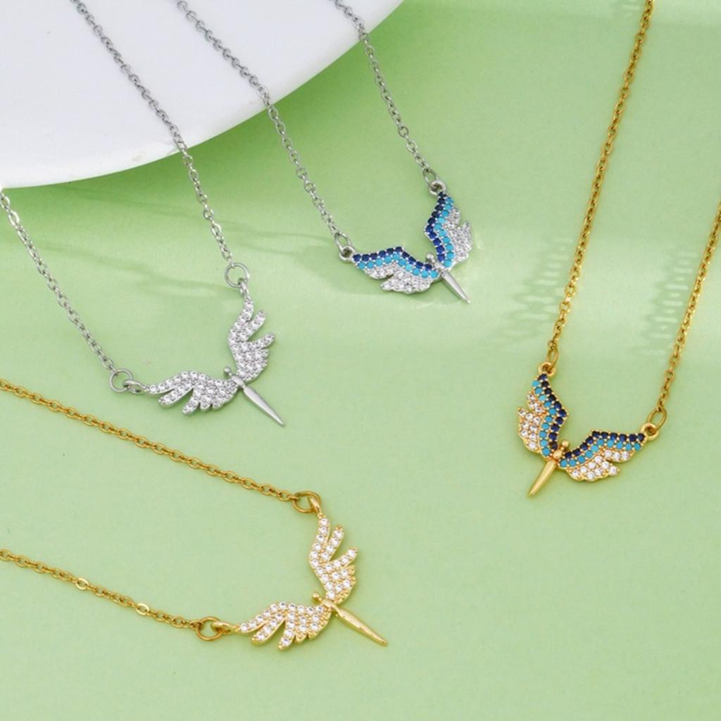 Stainless Steel Chain Fashion Shiny Zircon Angel with Wings Pendant Necklaces for Women Men Cool Choker Accessories Jewelry Gift