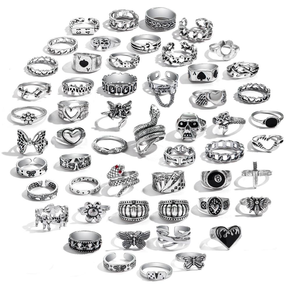 IPARAM Vintage Silver Color Ring for Women Men Snake Heart Butterfly Angel Finger Rings Fashion Jewelry Gift
