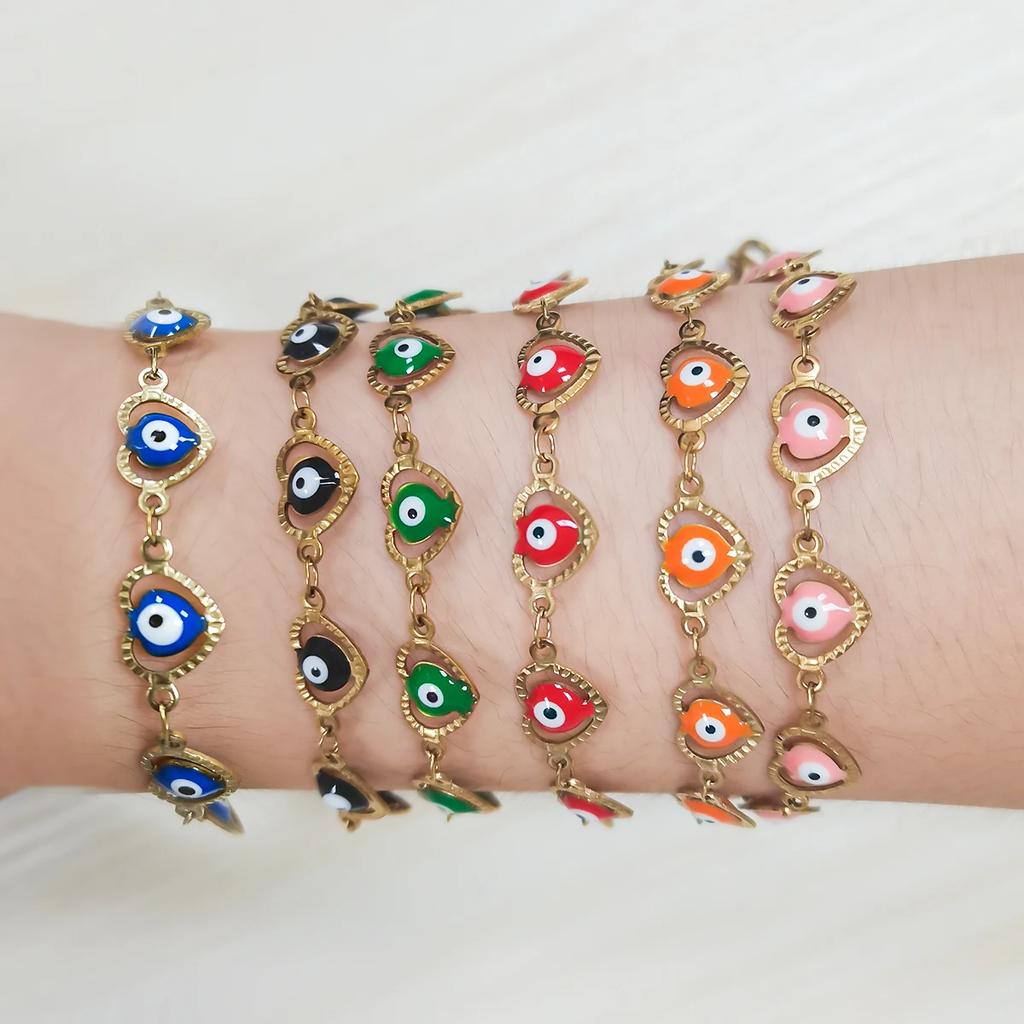 Fashion Stainless Steel Bracelet Loving Evil Eye Enamel Bead Jewelry Men and Women Devil Eye Bracelet Mexico Turkish Boho Gifts