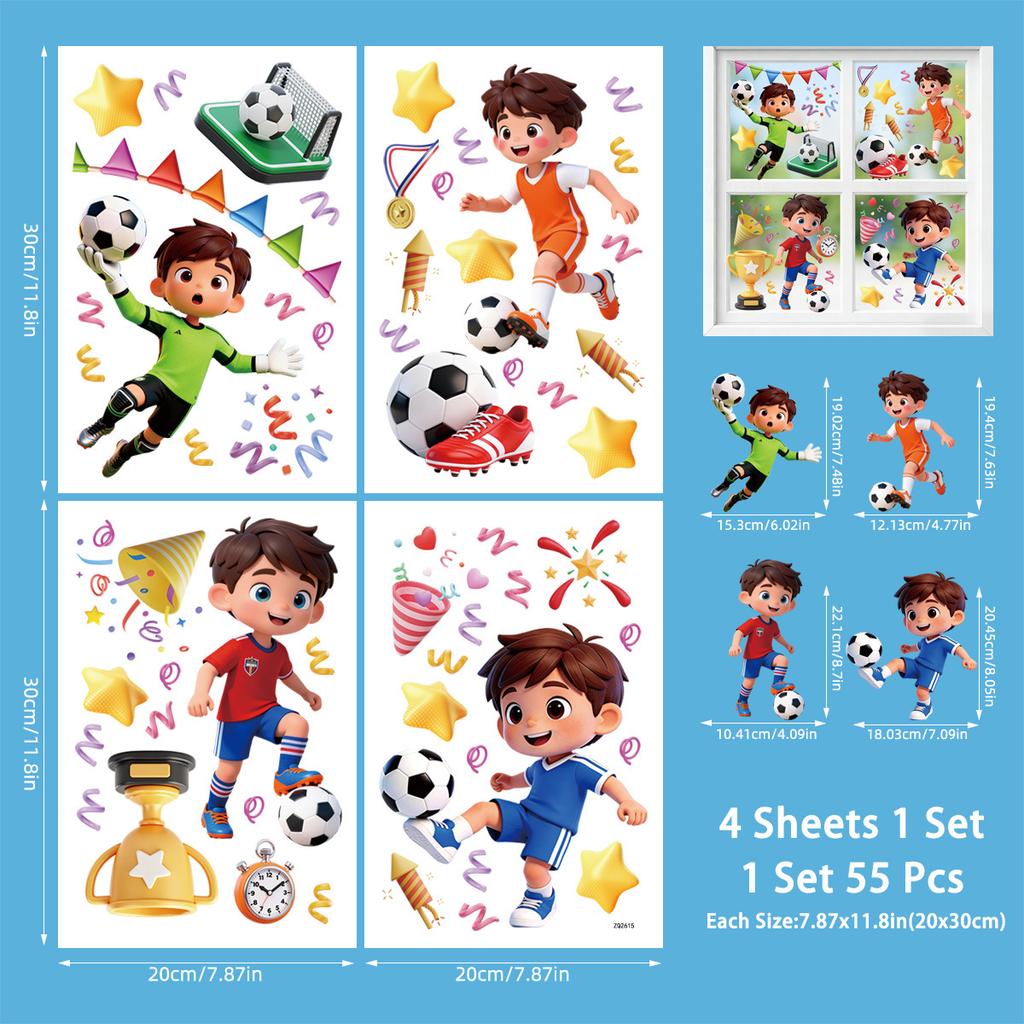 2026 World Cup Boys Sports Stickers, Soccer Elements Static Cling Decals for Fan Decor