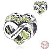 925 Silver Colorful Birthstone Heart Charms Mother's Day Forever Gem Diamond Beads Fit Bracelet Jewelry Gift for Women