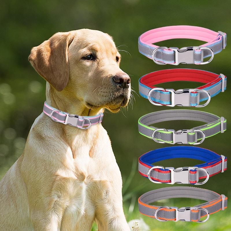 Pet Collar Can Be Engraved Metal Buckle Space Cotton Inner Highlight Reflective Strip Dog Collar Neck Ring