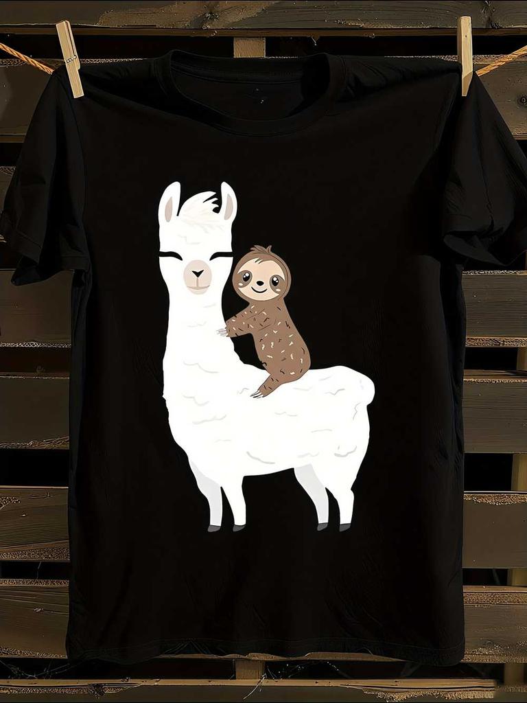 Funny Sloth Riding Llama T-Shirt Mens Tshirt Womens Tshirts with Letters Print Short Sleeves T-Shirt Casual Street Tee Shirt Top