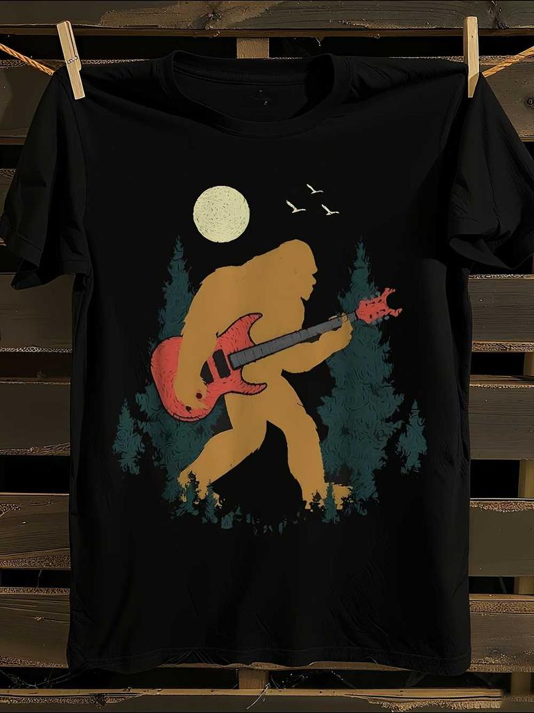 Sasquatch Guitar T-Shirt Mens Tshirt Womens Tshirts with Letters Print Short Sleeves T-Shirt Casual Street Tee Shirt Top