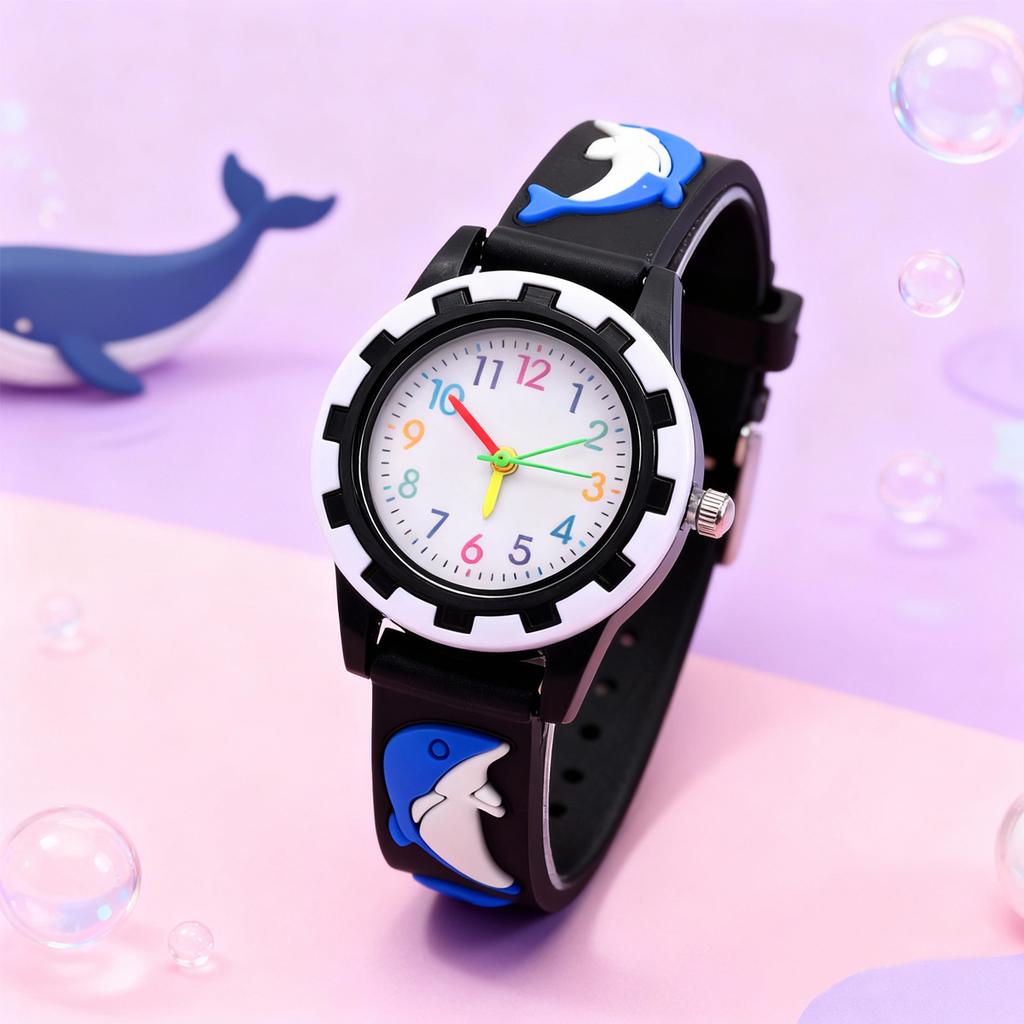 Cute Dolphin Silicone Watch Strap with Colorful Hands and Markers for Children, Suitable for Daily Wear and Christmas Gifts