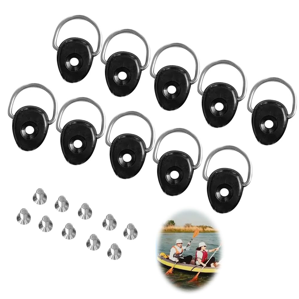 1. [Highly durable material, perfect for outdoor use] Oval D-ring hook made of a combination of plastic and stainless steel materials.It is resistant to impact and abrasion, and does not easily deteriorate even in water activities such as kayaking and canoeing, or in outdoor environments, so it can be used safely for a long time.2. [No tools required/Easy installation] No special tools or complicated work required.Even beginners can easily install it, not only to replace a damaged D-ring, but also to add an anchor point for securing cargo to a leather boat or small boat.3. [Excellent practicality and securely fixed] Used in conjunction with paddle straps and ropes to prevent paddles and poles from slipping or falling.In addition, fishing rods, camping equipment, storage bags, etc. can be stably fixed, improving safety and convenience while sailing.4. [Versatile and useful in a wide range of situations] This is a general-purpose D-ring hook that can be used not only for kayaks and canoes, but also for securing small boats, fishing tackle bags, tarps and gear when camping, etc.5. [Compact design/Easy to store] The small and lightweight oval design does not get in the way even when attached to the hull or equipment.When not in use, multiple pieces can be stored compactly and are convenient to carry.