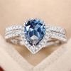 Elegant Pear Blue Cubic Zirconia Stylish Jewelry Women Bridal Wedding Occasion Rings Luxurious Engagement Event Gathering Accessories