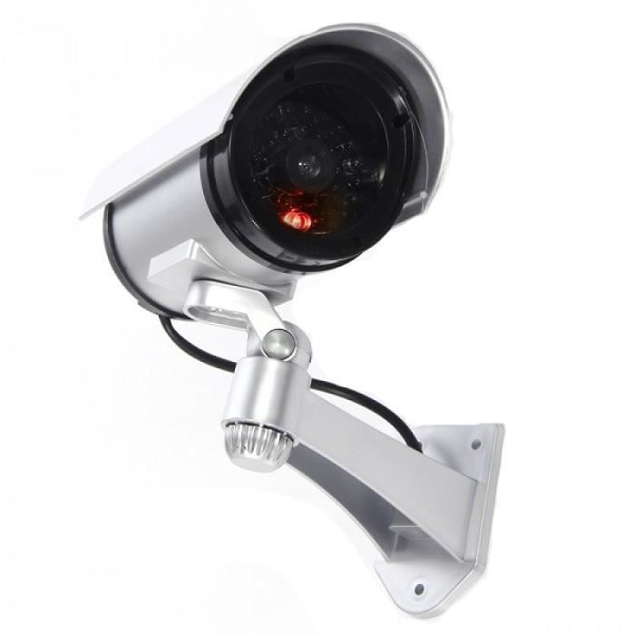 Caméra factice LED Sécurité CCTV Intérieur/Extérieur - GRIS - Rotation 360° - Alimentation Pile