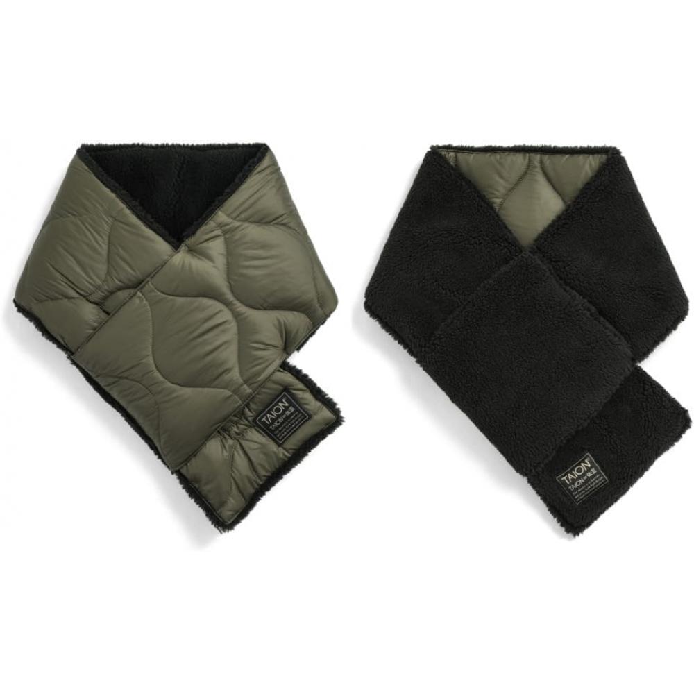The TAION Goods Military Reversible Down Muffler R201ALSML-1 Dark Olive is an attractive item that can be styled in various ways depending on your mood. Known for its military line, this reversible muffler is a winter essential, featuring an upper side made of high-density military fabric and down for excellent warmth, while the inner side is treated with plush material for added comfort. This product combines comfort and elegance, suitable for both men and women.