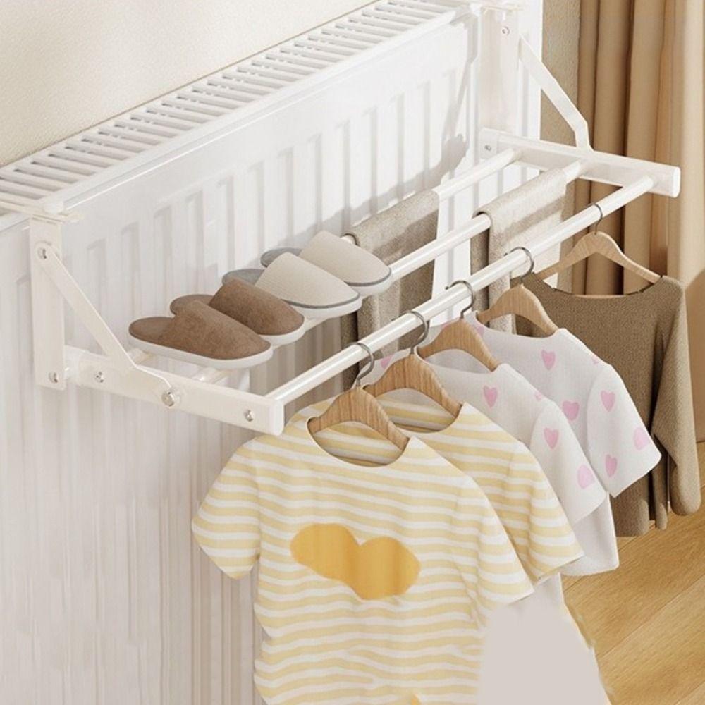 Carbon Steel Retractable Radiator Cloth Airer Wall Mounted Shoes Storage Rack for Living Room