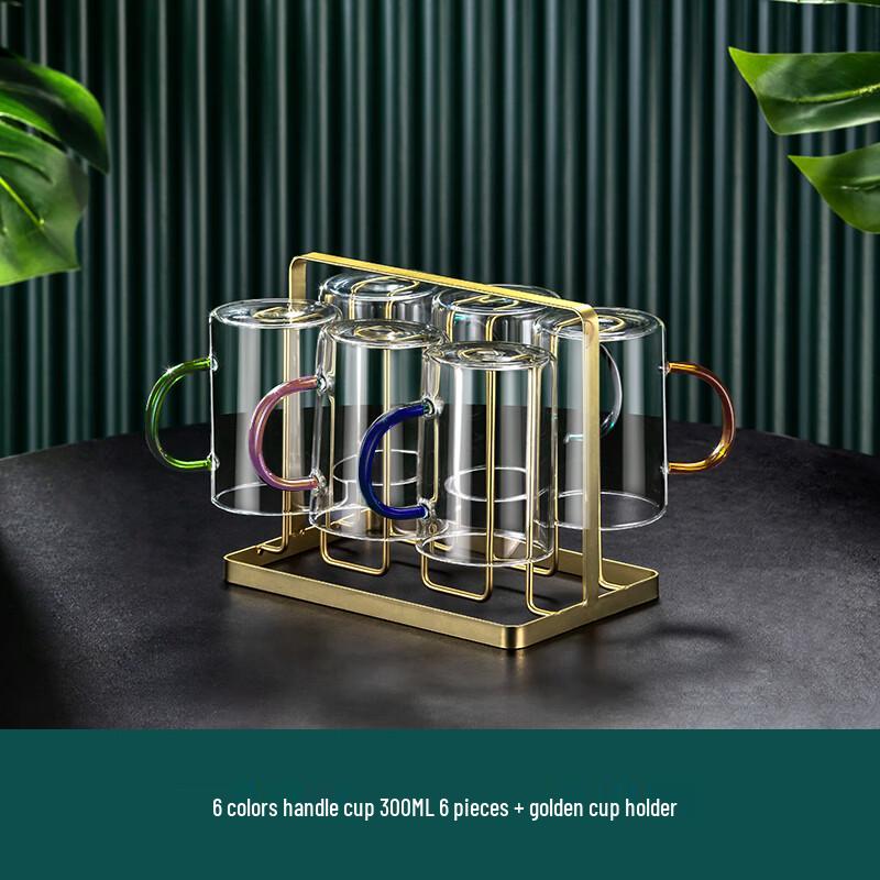 Naijiang 6-Piece Light Luxury Glass Cup Set with Gold Holder