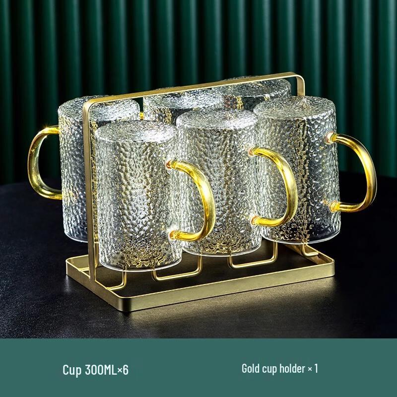 Naijiang Hammered Glass Teacup Set with Gold Rack