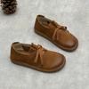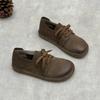 Johnature Casual Genuine Leather Lace-up Flats Round Toe Solid Color Cowhide Versatile Women's Shoes