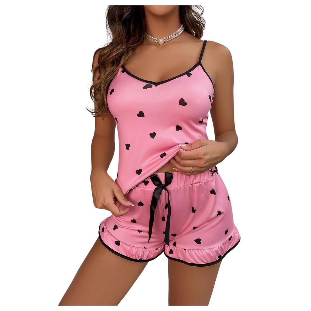 Printed Pyjama Sets For Women Soft Two Piece Loungewear Sets Sleeveless Tops Shorts Matching Pyjamas Nightwear