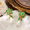 Vintage Retro Green Ear Clip French Court Style Exaggerated Luxury Elegant Temperament Earrings