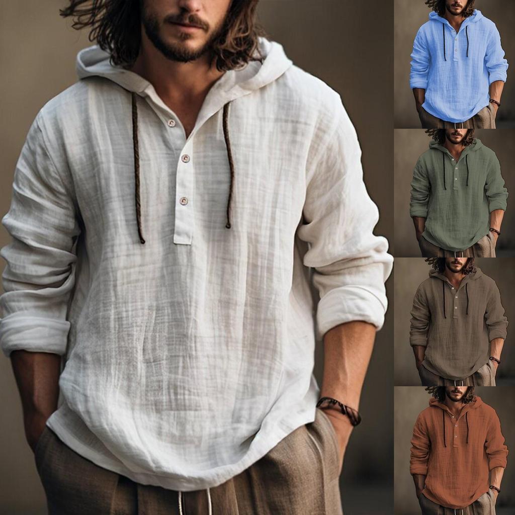 Autumn And Winter Men's Solid Long Sleeve Cotton Hemp Sweater Casual Hooded Sweater