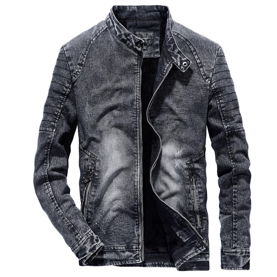 Vintage Denim Jackets Men Slim Solid Color Casual Jeans Coat