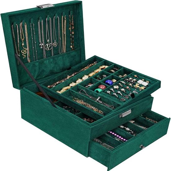 VERSATILE AND PORTABLE: The jewellery storage box not only keeps your dressing table tidy, but it also serves as a lovely ornament for your home. Because it is lightweight and portable, it is an absolute must-have for women and girls travelling or conducting business.