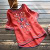 100% Cotton Embroidered Long-sleeved Plus-size Base Shirt, Spring-autumn New Style T-shirt, Cotton and Linen Top