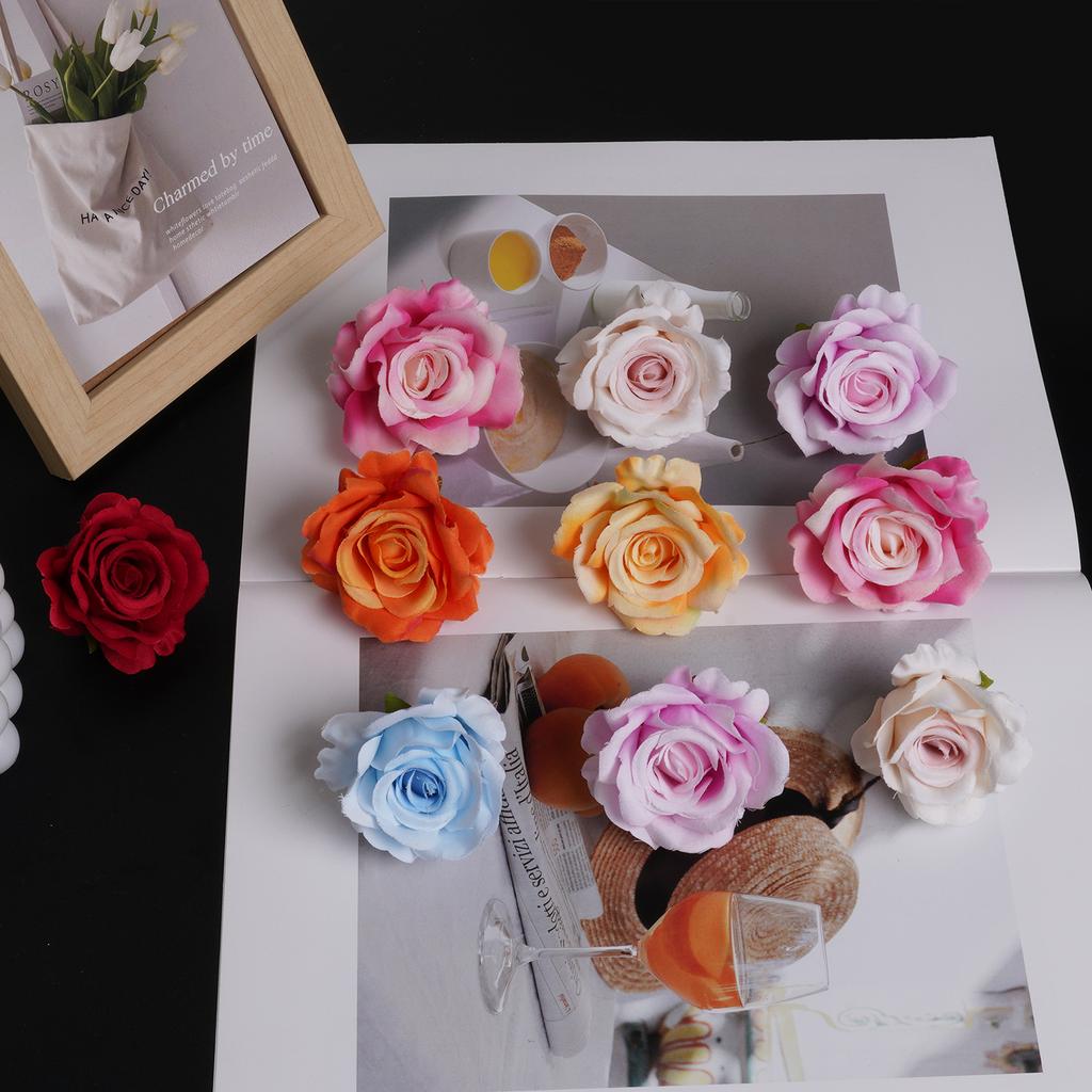 7pcs 6CM Silk Rose Heads Vintage Artificial Flowers Wedding DIY Wreath Garland Accessories DIY Gifts Box Scrapbooks Decor