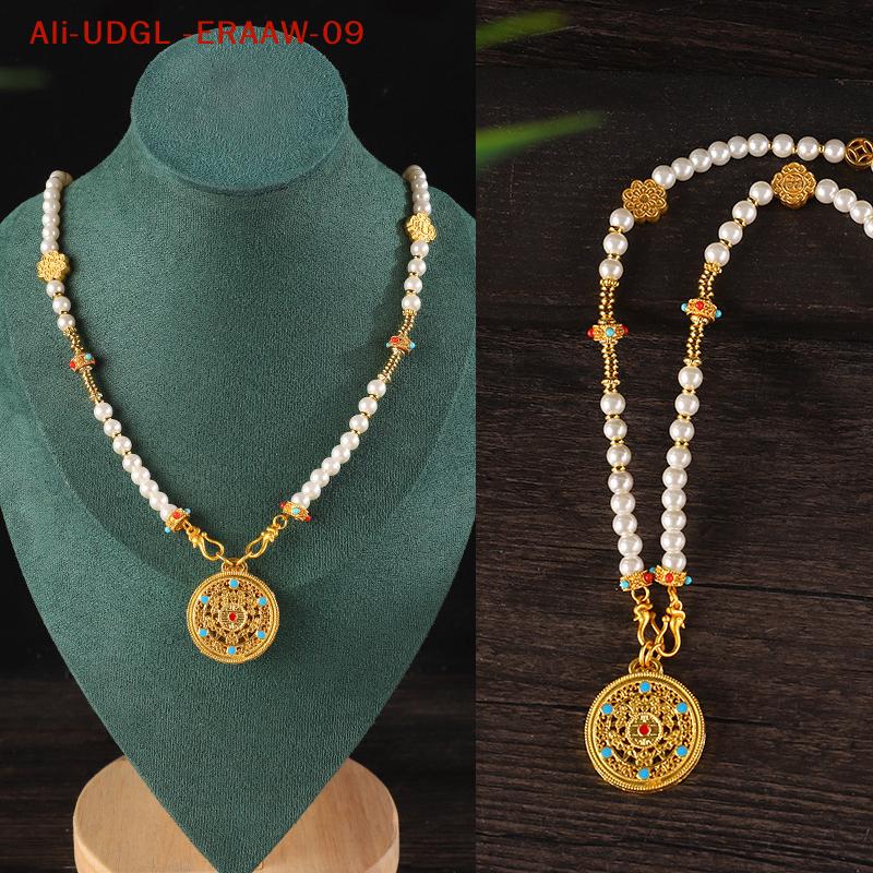 1PC Chinese Style Pearl Necklace Hanfu Accessory Zinc Alloy Hollow Carved Pendant Long Chain Necklace
