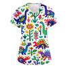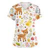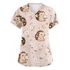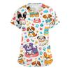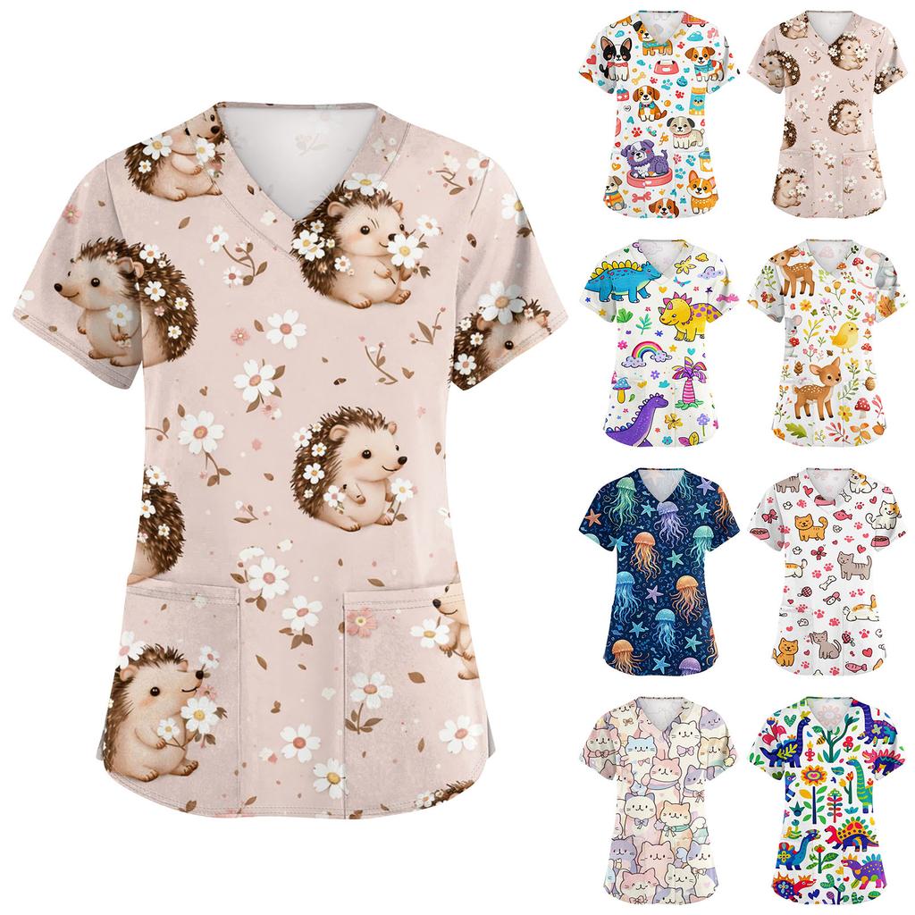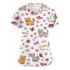 Women's Casual Short-Sleeve Cute Animal Print V-Neck Pocket Workwear Top