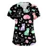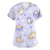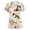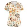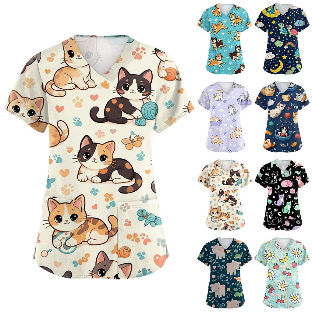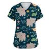 Women's Casual Short-Sleeve Cute Animal Print V-Neck Pocket Workwear Top