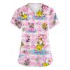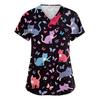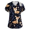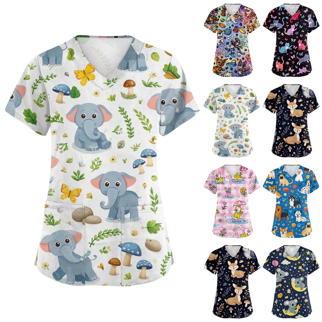 Women's Casual Short-Sleeve Cute Animal Print V-Neck Pocket Workwear Top