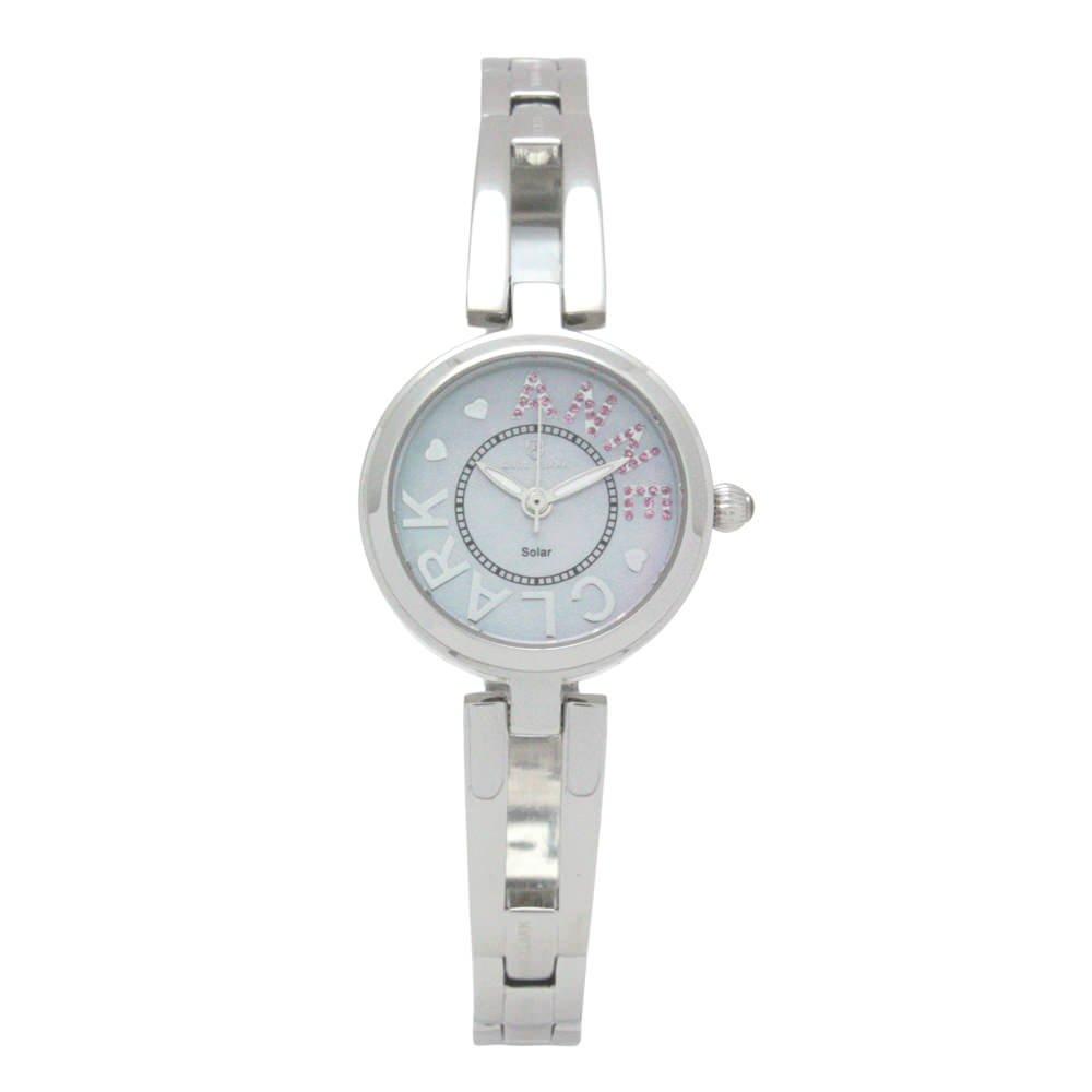 ANNE CLARK Solar No Battery Replacement Stainless Natural Shell Silver Includes Easy Strap Adjustment Tool Women's Watch, Required, Skin-Friendly